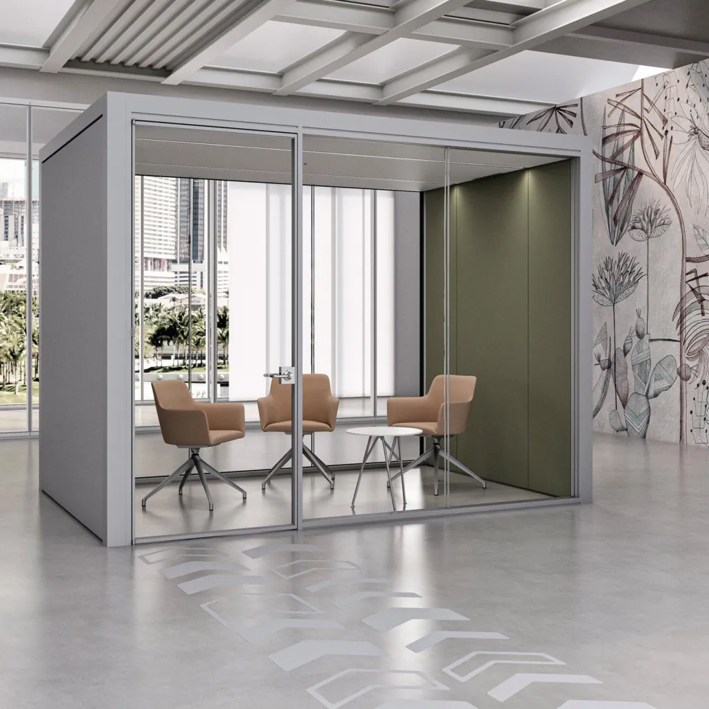 Notre gamme comprend panneaux acoustiques, cabines acoustiques, cloisons et banquettes insonorisantes, toutes pensées pour combiner performance phonique et design, afin de créer des bureaux fonctionnels, confortables et esthétiques.